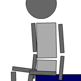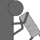 Pushing a heavy object. The high number of poses and movements in this action, along with the slight rotation, forced me to consider the character frame I had been working with as a three dimensional body rather than a flat one. This, as well as my other flash animations, was created by filling in motions between keyframes.